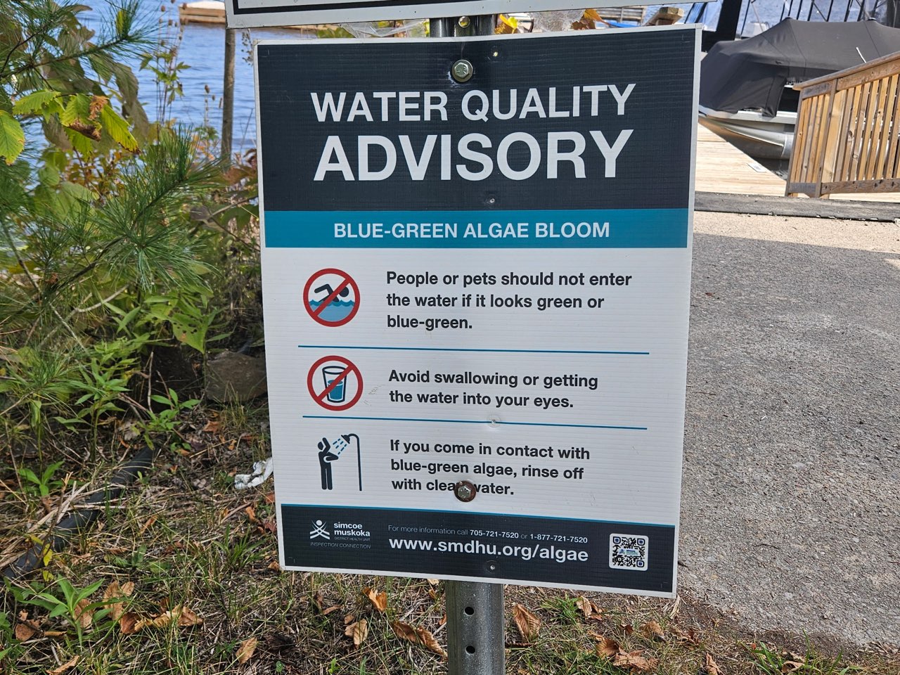 Swimming, bathing, or showering in areas of the lake not visibly affected by algae blooms is not expected to cause health issues. The Simcoe Muskoka District Health Unit will provide updates once testing confirms that toxins are no longer present. Learn more here.